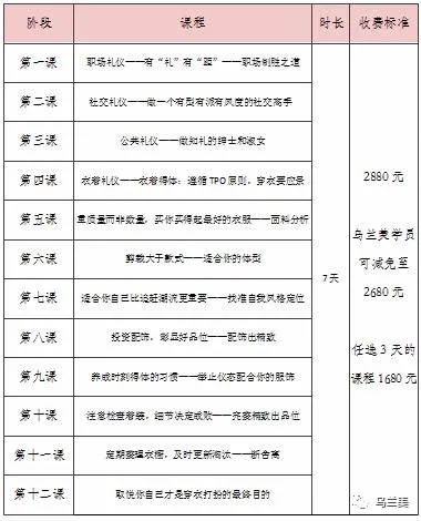 近日,烏蘭美女性綜合提升特色班即將開課啦,十二項單獨(dú)主題,圍繞美的核心,你可自由隨心選擇,每一堂課,都直探形象美學(xué)精髓,為你揭開著裝品位的奧秘。不想穿的平庸?想要形象風(fēng)度氣質(zhì)談吐得體?來烏蘭美學(xué)習(xí)就夠了!