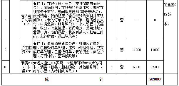 7.軟件與可穿戴設(shè)備需要與采購(gòu)方目前使用的《智慧居家養(yǎng)老服務(wù)平臺(tái)》進(jìn)行無(wú)縫對(duì)接,且能實(shí)現(xiàn)兩套平臺(tái)融合共享、即居家養(yǎng)老的老人和入住養(yǎng)老機(jī)構(gòu)的老人檔案信息共享、服務(wù)共享、賬戶共享,能極大方便居家的老人一鍵入住到養(yǎng)老機(jī)構(gòu)(提供承諾書(shū)及對(duì)接方案)。平臺(tái)對(duì)接產(chǎn)生的所有費(fèi)用由中標(biāo)方承擔(dān)、采購(gòu)方負(fù)責(zé)協(xié)調(diào)提供《智慧居家養(yǎng)老服務(wù)平臺(tái)》對(duì)接接口。