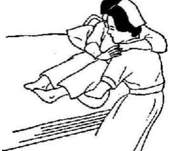 1、 一人搬運法(適用于患兒及病情許可,體重較輕者)